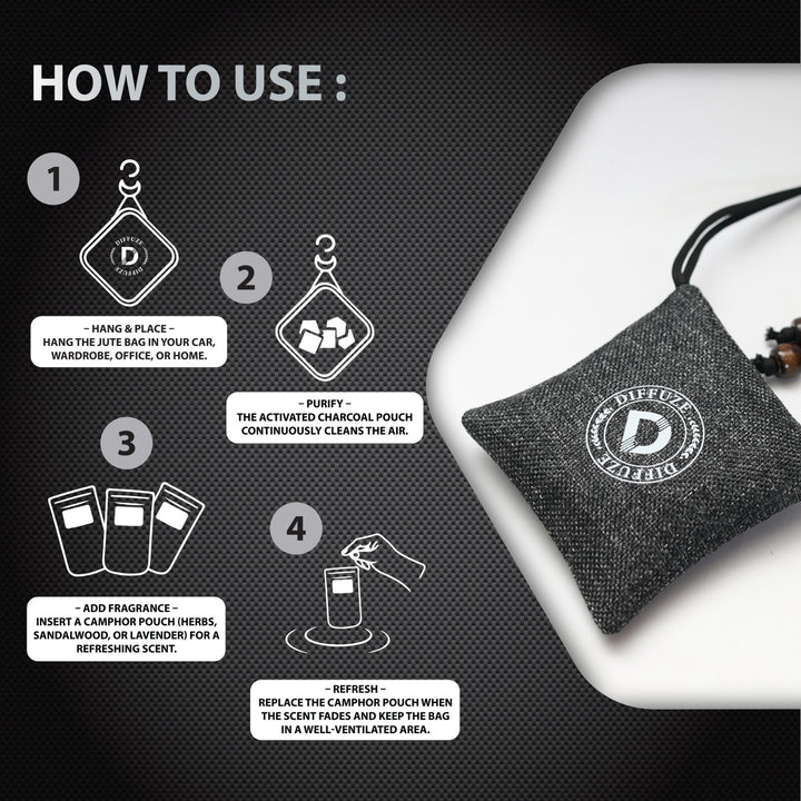 Activated Charcoal Odor Eliminator: One specialized pouch contains premium activated charcoal. This powerful natural absorbent effectively neutralizes unwanted odors, excess moisture, and even harmful airborne pollutants, ensuring your space feels truly fresh and clean.