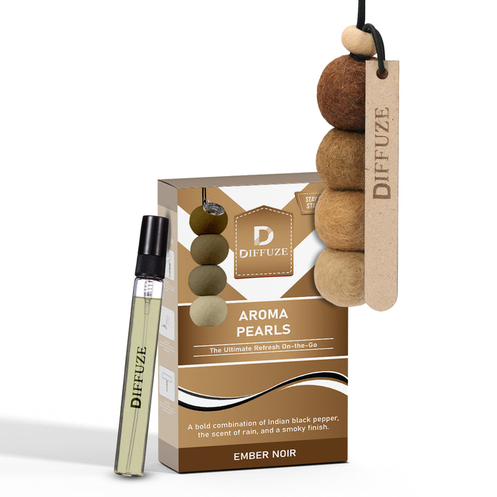 Aroma Pearls (Ember Noir) - Luxury Car Air Freshener with Essential Oil Spray