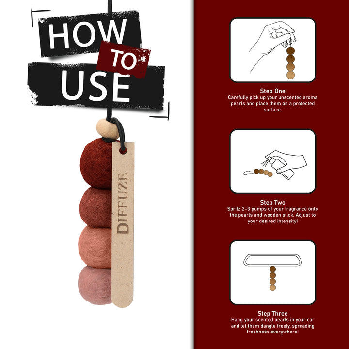 Customize Your Scent Experience: You're in control! Easily adjust the intensity of your fragrance by simply adding more or fewer sprays of essential oil onto the felt balls. Whether you prefer a subtle whisper of scent or a bold, invigorating aroma, DIFFUZE lets you tailor it to your mood.